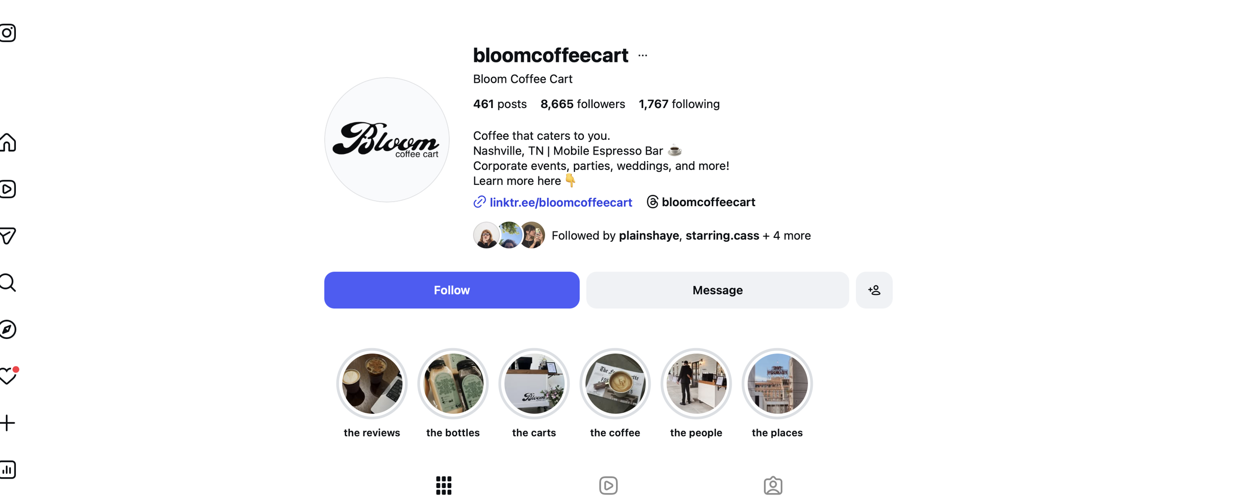 Bloom Coffee Cart had a brand new identity and no audience. I developed their full social media strategy from scratch — establishing content pillars, designing a suite of branded templates, and creating a visual content direction that translated their editorial aesthetic into a scroll-stopping feed.